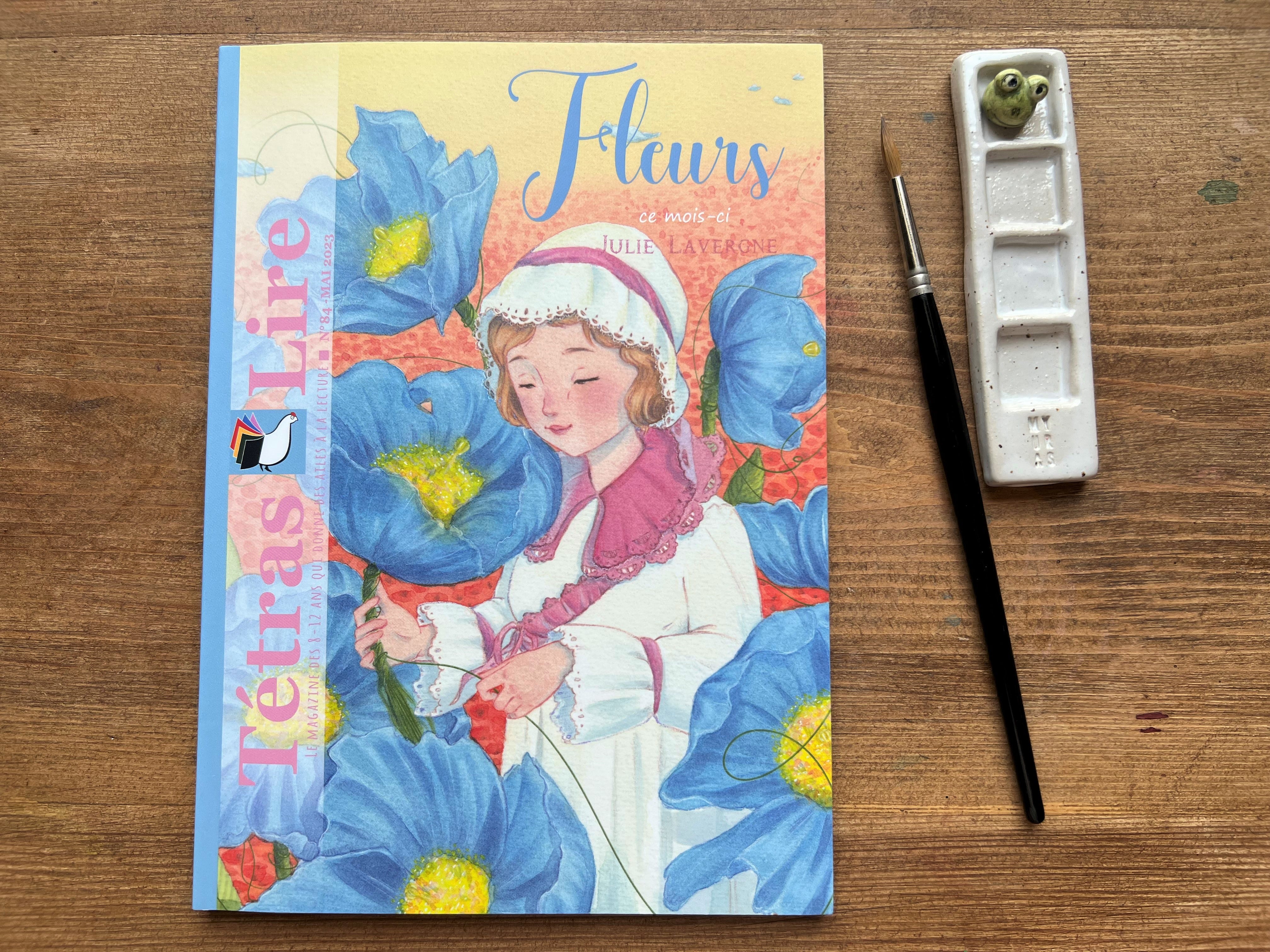 finalmente posso dirlo ad alta voce: Ho illustrato un libro! Beh, non si tratta di un libro comune, ma più di una rivista con le qualità di un libro. Ciò che ho amato di più di questo progetto è stata la storia. Mi sono innamorata fin dalle prime parole: campagna francese, periodo 1800 e fiori come “protagonisti. Si può già dire che tutto ciò si adatta perfettamente al mio stile artistico! L'aspetto negativo è stato il fatto di avere solo un mese di tempo per realizzare tutte le illustrazioni (credo che questo sia un aspetto negativo standard quando si lavora nel mondo delle riviste). Prima, ho creato lo story board e tutti i disegni finiti per la storia, poi mi sono concentrata sulla copertina. Questa è stata per me la difficoltà principale in questo progetto, ed è per questo che voglio parlartene qui.