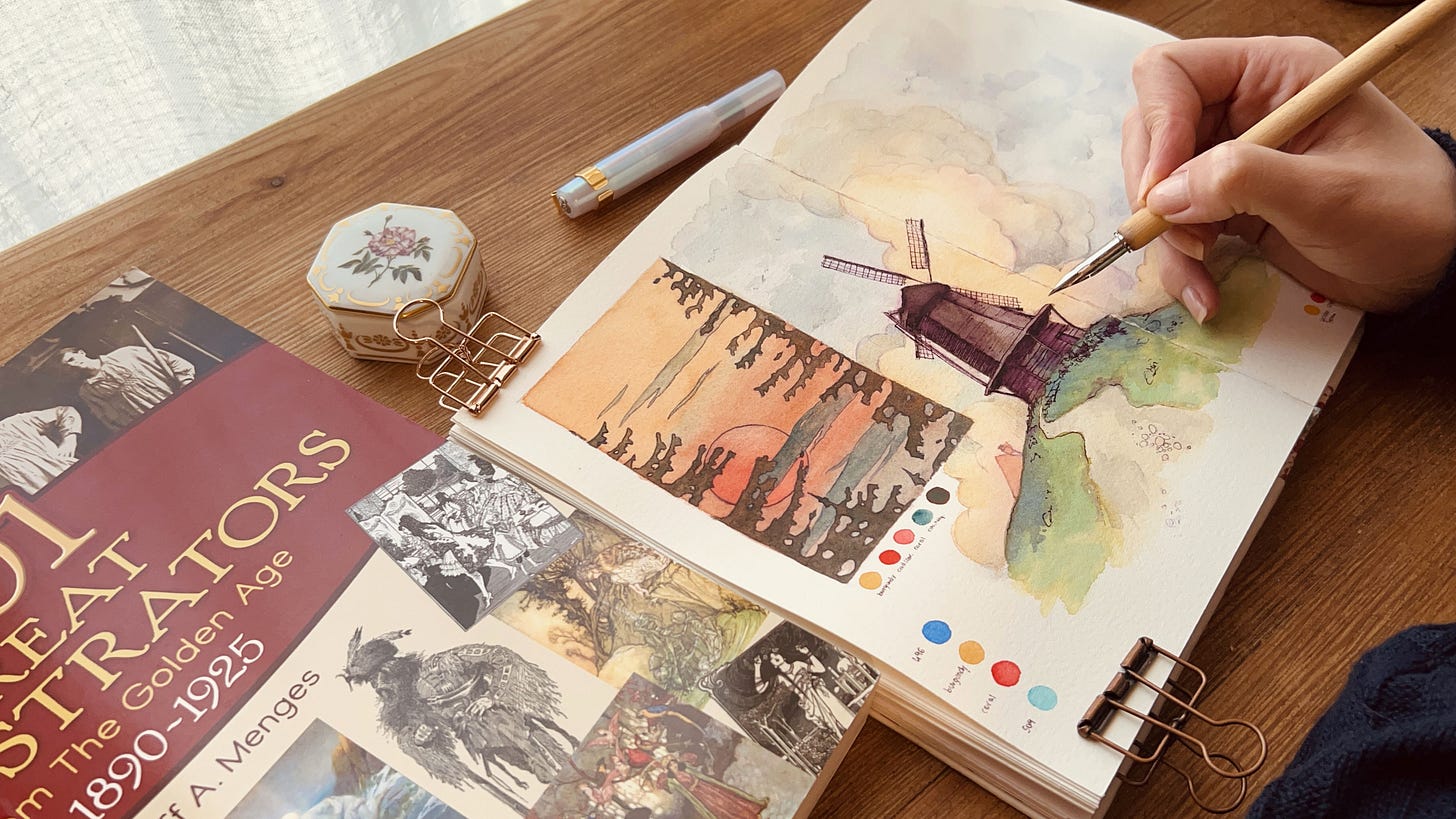 It’s almost impossible to know the exact tools, colors and techniques used by the artist. So it’s difficult to reproduce every aspect of his work. Not to mention the amount of unnecessary time and effort you would have spend on it. Choosing a specific illustration and specific aspects of it is the first step in understanding your taste and style.